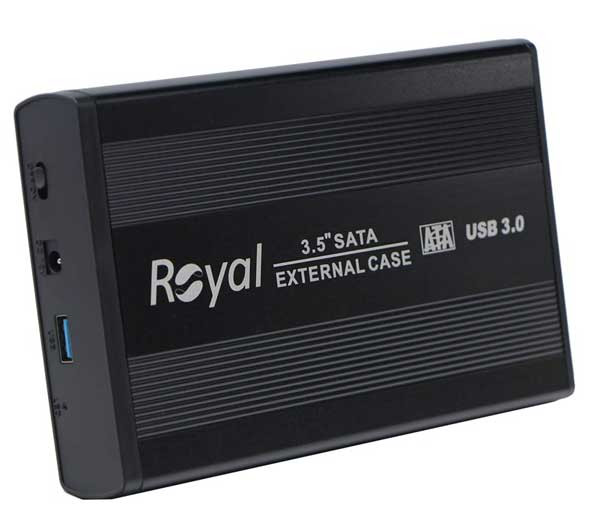 قاب اکسترنال هارد دیسک ۳٫۵ اینچی USB 3.0 رویال مدل RH3531 به همراه آداپتور، اتصال به صورت Plug And Play، رابط USB 3.0 و بدنه ای فلزی و مستحکم، مناسب برای تبدیل هارد های ۳٫۵ اینچی به هارد اکسترنال توسط رابط USB، پشتیبانی از اکثر سیستم عامل ها عدم نیاز به نصب درایو و آداپتور همراه، پشتیبانی تا حداکثر ظرفیت ۱۰ ترابایت